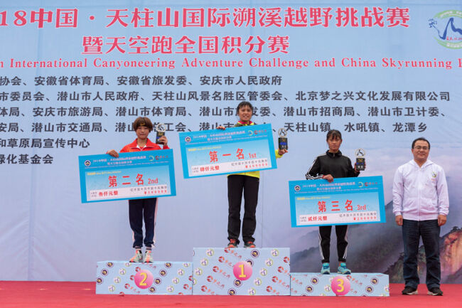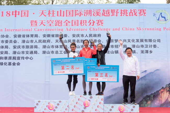 ? ? 18公里溯溪越野個(gè)人賽女子前三名分別為:周莉莉(貴州,2小時(shí)03分57秒)、姚玉舟(安徽,2小時(shí)04分43秒)、李雙群(貴州,2小時(shí)13分04秒) 程斌 攝