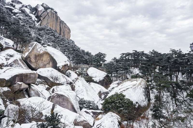 受冷空氣影響,2020年12月14號,安徽潛山天柱山迎來降雪,漫山遍野,銀裝素裹,宛如冰雪夢幻世界。