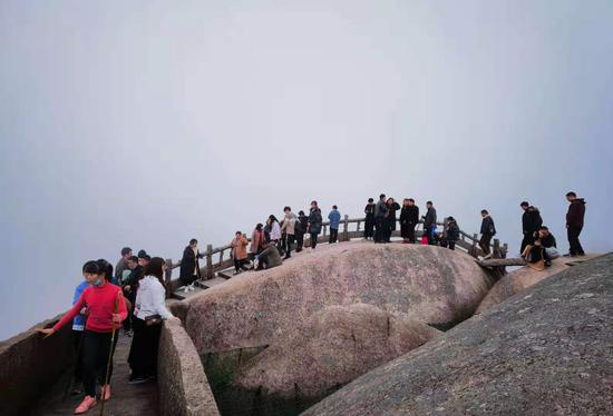 初春的天柱山秀中藏媚,景色宜人。天柱峰猶抱琵琶半遮面,時而被云霧籠罩,時而露出偉岸真容,景象萬千,美輪美奐。中午時分,更是驚現(xiàn)“佛光”奇觀,游客紛紛發(fā)出歡呼,共同祝福偉大的祖國牛氣沖天、繁榮富強(qiáng)。