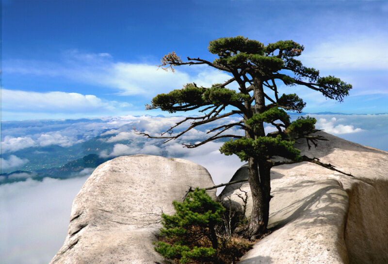 登天柱,滿目皆松。在安徽潛山市天柱山上,千年古松不下萬株,千姿百態(tài)。其中尤以群松之首的天柱松最為出名。天柱松與日月為伴,風(fēng)雨為友,據(jù)了解,已有1000多歲。