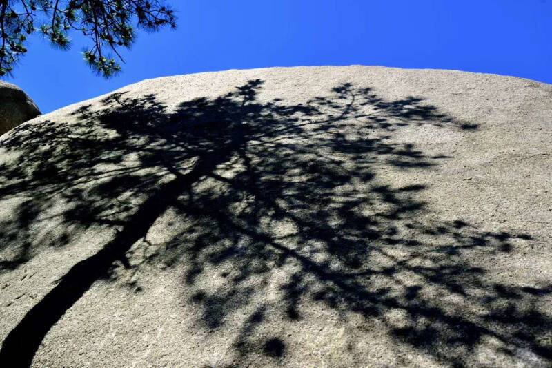 這些生長在石縫里的松樹,根部能夠分泌出一種酸性的物質(zhì),腐蝕石頭的表面,使其化出養(yǎng)分供自己吸收。為了從石頭里尋覓生機(jī),也為了牢牢抓住絕壁,它們的根日日夜夜與石頭搏斗著,最終穿入堅如鋼鐵的石體,讓人感受到寧靜之中蘊藏的無窮力量。