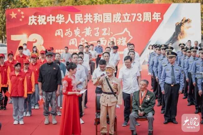 升旗儀式上,抗美援朝老兵面對“保家衛(wèi)國 中國人民志愿軍抗美援朝72周年”大型畫板心情激動,現(xiàn)場重溫了他們在戰(zhàn)場上殊死戰(zhàn)斗的不凡經(jīng)歷和感人故事。