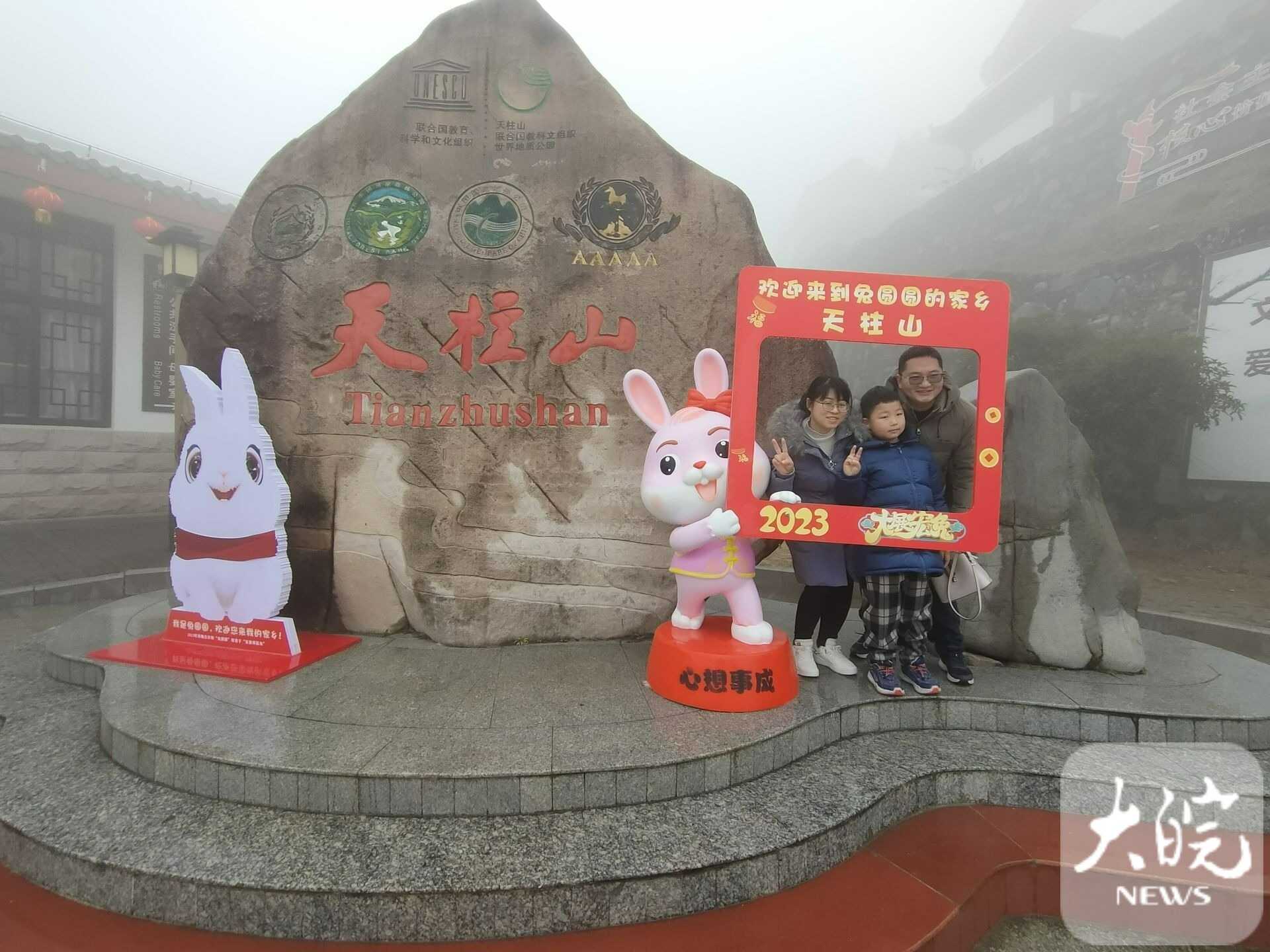春節(jié)假期,天柱山風(fēng)景美,年味濃,景區(qū)在馬祖、茶莊游客中心、天池峰等多處設(shè)有歡慶新年的“兔圓圓”卡通形象,游客在這里拍照,許下美好愿望?!敖衲甏汗?jié)帶著家人在天柱山旅游過年,提前在網(wǎng)上預(yù)訂好民宿,一家人開心快樂地體驗(yàn)山岳風(fēng)情,吃農(nóng)家菜、看民俗、滑冰雪、賞美景,體驗(yàn)“慢生活”,在“兔圓圓”故鄉(xiāng)過兔年,意義非凡。”來自上海的余先生開心地說。