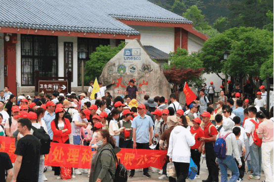 “中國旅游日”當(dāng)天,天柱山風(fēng)景區(qū)舉辦了“文明旅游、詩畫天柱、幸福中國”—全國旅游直通車萬人共攀天柱峰活動(dòng),迎來了來自省內(nèi)外直通車共計(jì)百余輛。