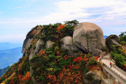 特色: 深秋的天柱山,雖不像春天那樣萬紫干紅,也不像夏天那樣生機盎然,更不像冬天那樣粉妝玉砌,但是也有她獨特的美。秋天的天柱山,由于大氣變冷,晝夜溫差增大,葉片中的葉綠索逐漸消失,而葉子中的胡蘿ト素、葉青素等顯露出來,葉子由綠慢慢變成黃色、橘黃色、橙色。猩紅色,最后變成深紅色,就像現(xiàn)在的樣子了。這個時節(jié)來天柱山,站在山峰上,遠眺著滿山楓葉的深紅和松樹的翠綠,恰似綠...